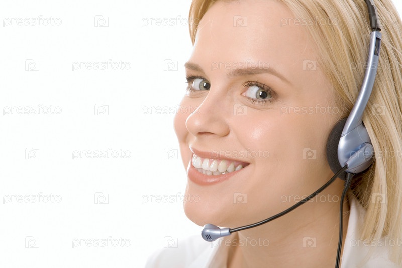 Портрет дружелюбного оператора обслуживания клиентов, улыбающегося с очаровательной уверенной улыбкой
