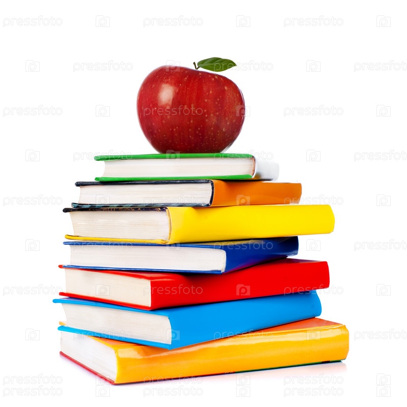 Яблоко на стопке книг на белом фне