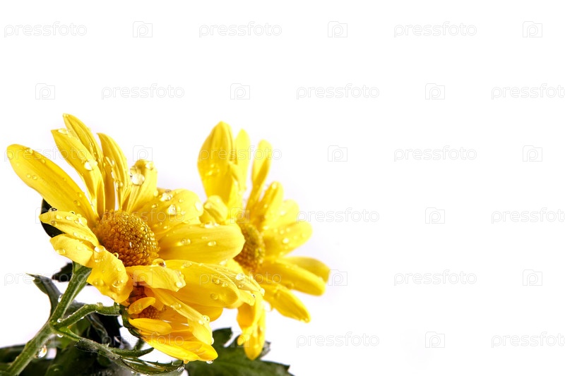 Букет из желтых хризантем на белом фоне