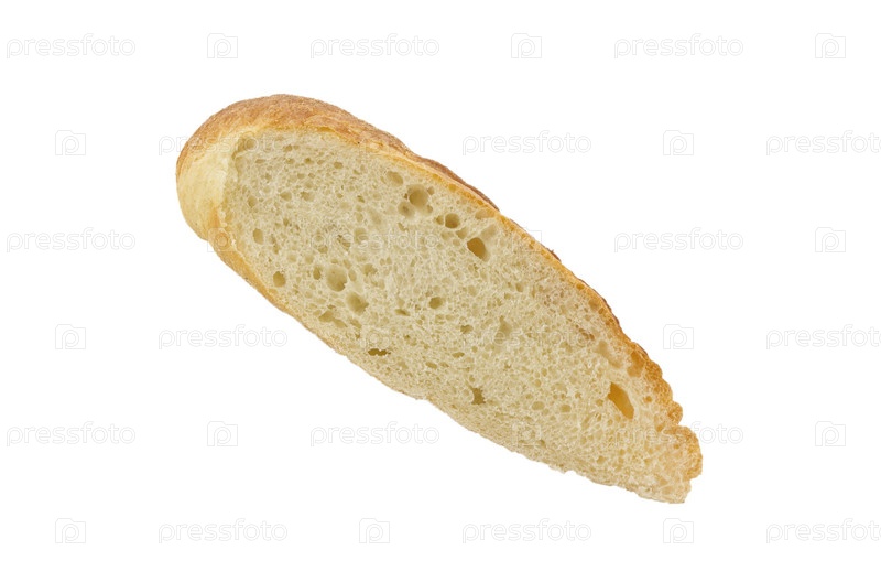 Кусочек французского багета, изолировано на белом фоне