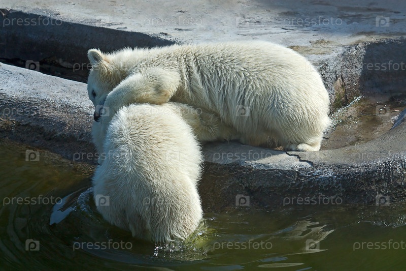 Два белых медведя в зоопарке, Россия