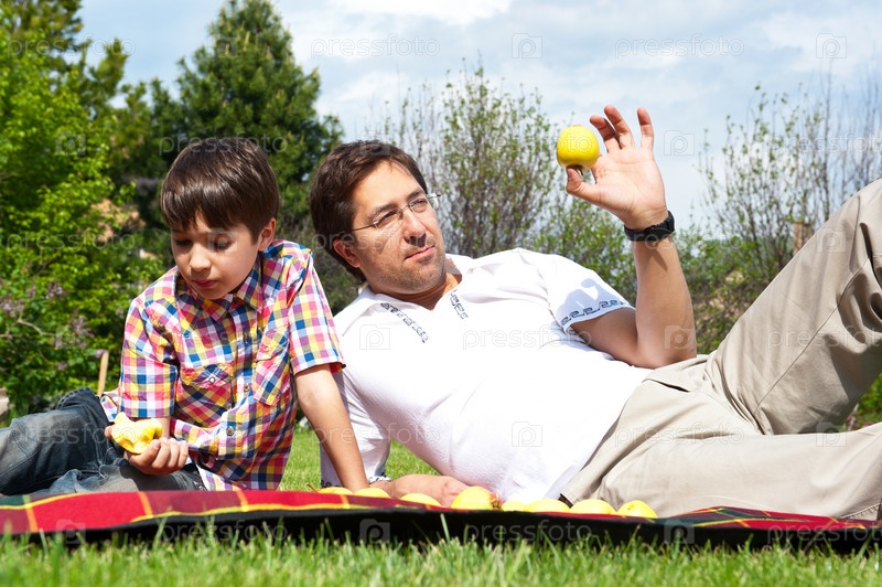 Папа с сыном на пикнике