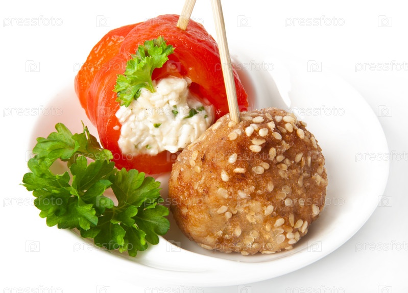 Канапе с сыром и сладким перцем и фрикадельки
