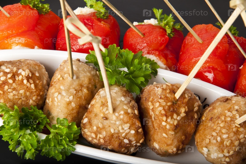 Закуска из фрикаделек, сладкого перца и сыра