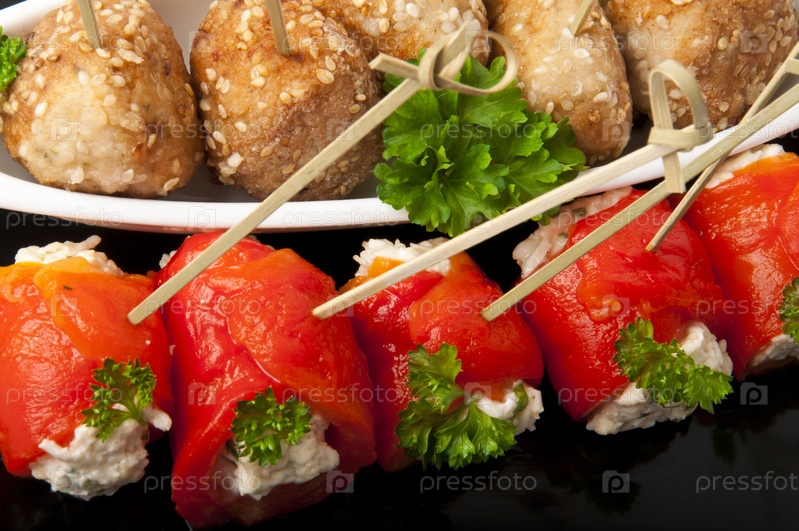 Закуска из фрикаделек, сладкого перца и сыра