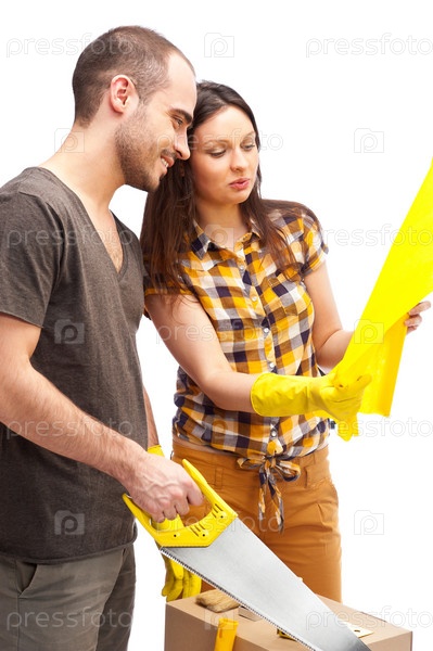 Молодая пара делает ремонт в квартире