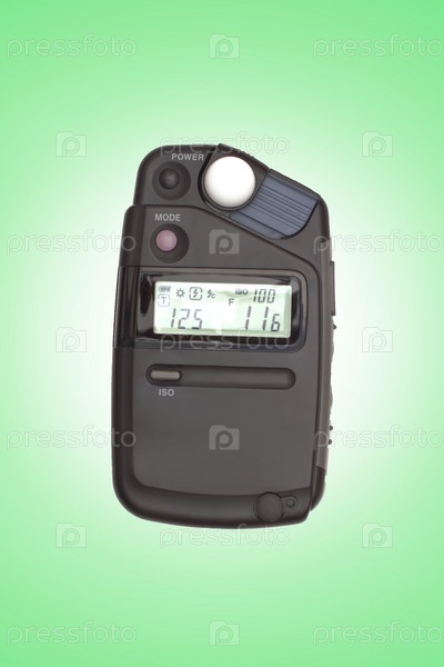 Цифровой экспонометр, изолирован на зеленом фоне