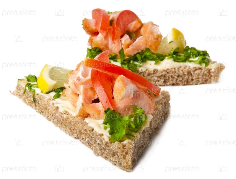 Бутерброд с вареной рыбой на белом фоне