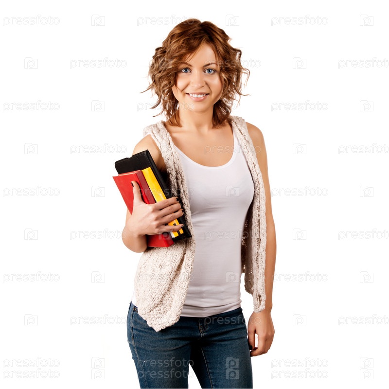 Счастливая молодая студентка с книгами
