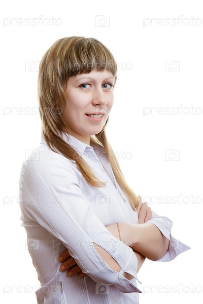 Молодая девушка улыбается на белом фоне