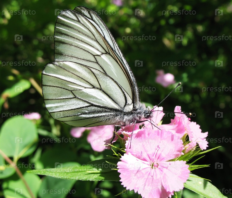 Бабочка на цветке гвоздики бородатой