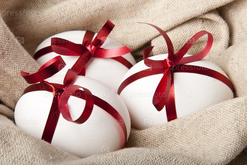 Пасхальные яйца с ленточками крупным планом