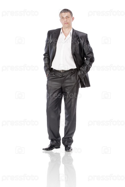 Элегантный бизнесмен на белом фоне в черном костюме