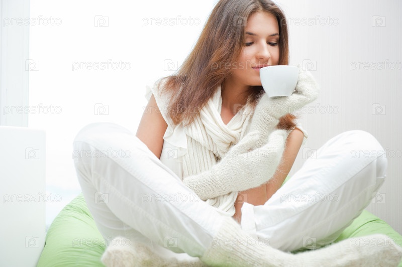Девушка с чашкой чая в домашней обстановке