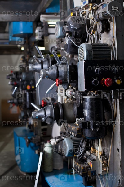 Панель управления печатного станка с красными кнопками