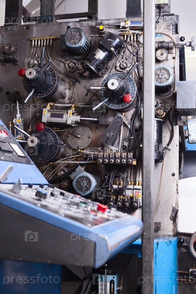 Панель управления печатного станка с красными кнопками