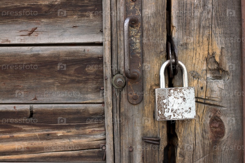 Старый ржавый замок на деревянной двери