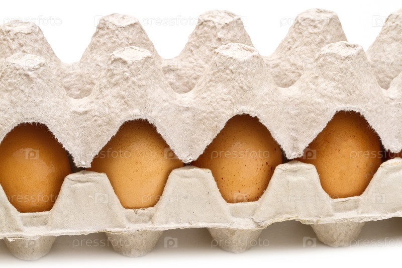Коричневые яйца в упаковке на белом фоне