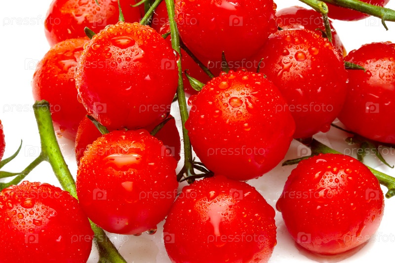 Спелые помидоры черри на белом фоне