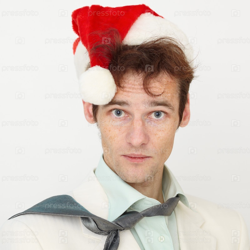 Портрет человека в красной рождественской шляпе на крупном плане