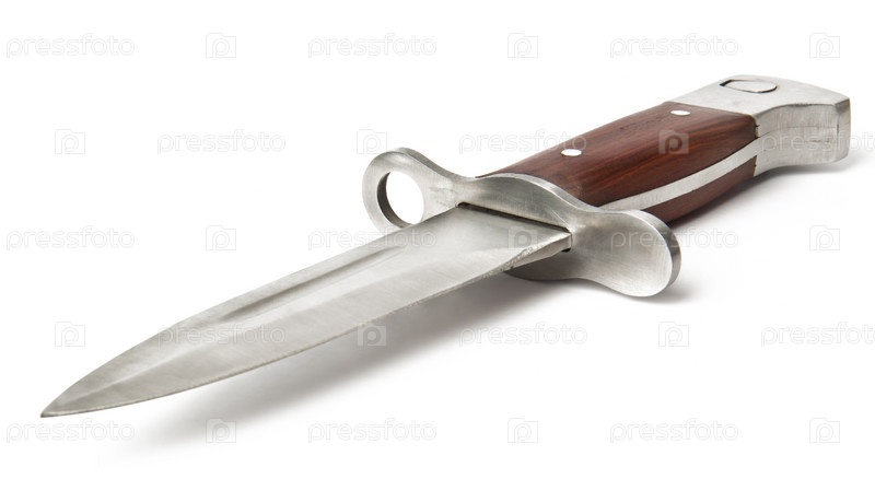 Армейский нож на белом фоне
