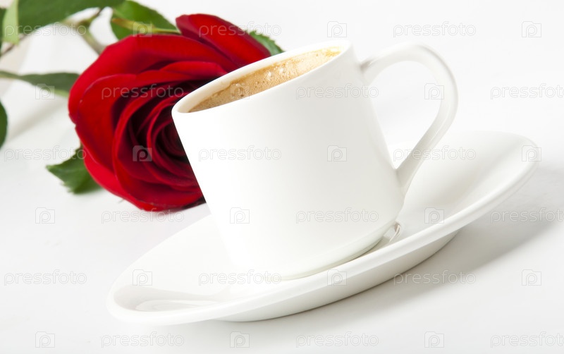 Романтический завтрак - чашка кофе с красной розой