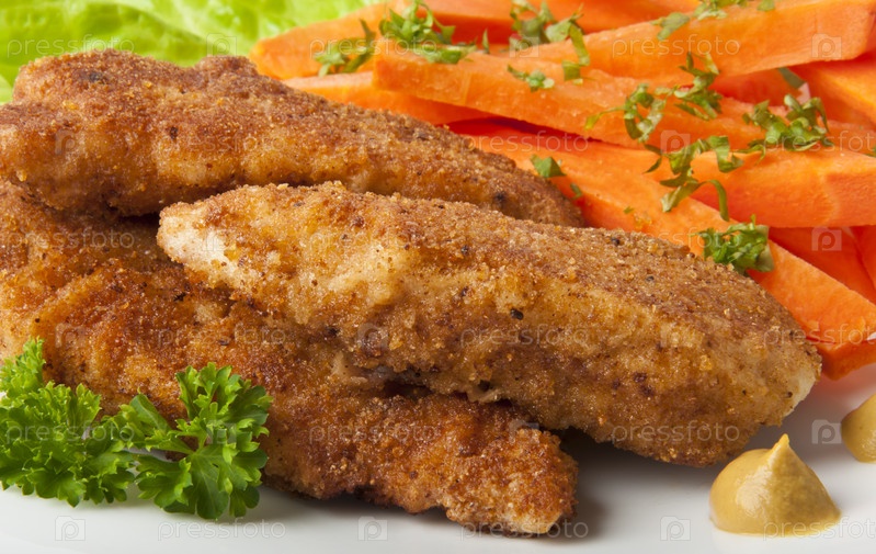 Цыпленок жареный в сухарях с овощами