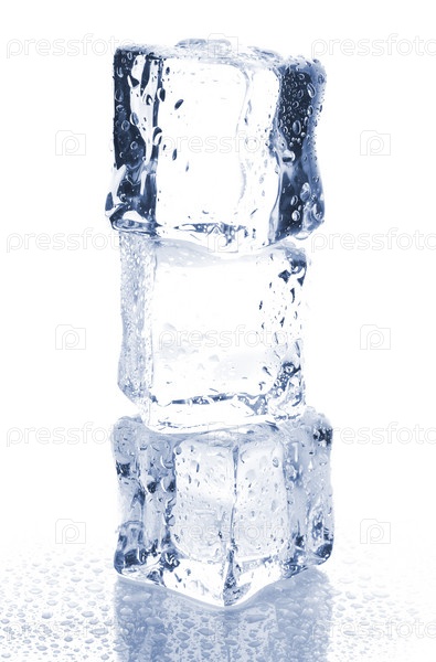Три кубика льда на белом фоне