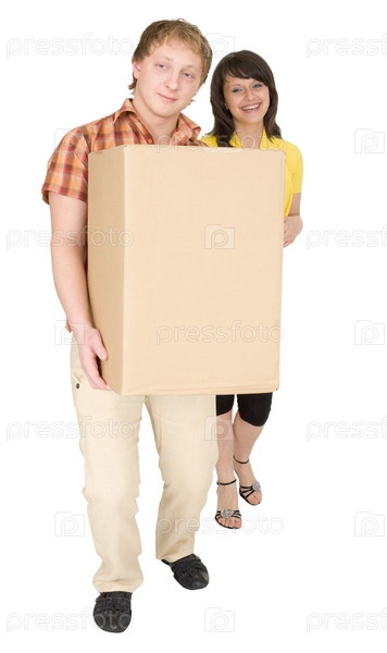 Женщина и мужчина держат коробки с покупками