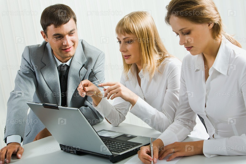 Уверенный специалист объясняет бизнес-отчет своим коллегам в офисе
