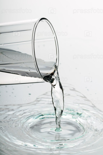 Чистая прозрачная вода наливается из стакана