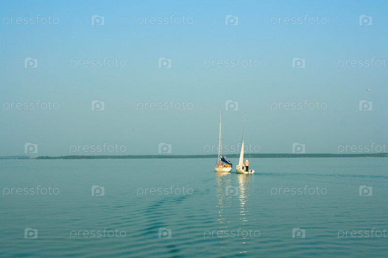 Две яхты на озере, закат