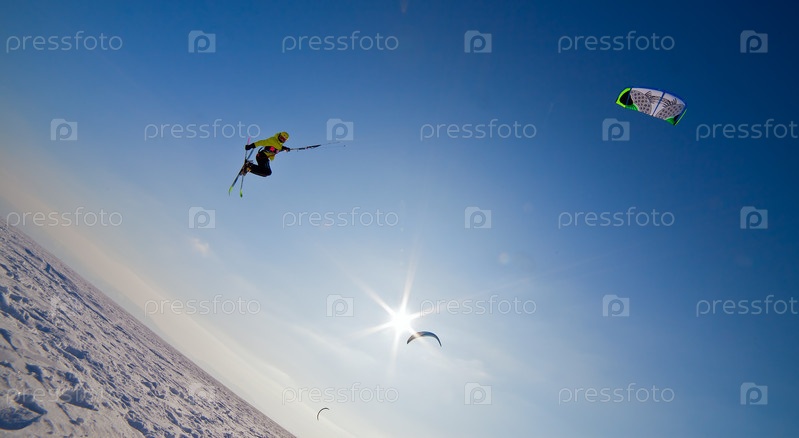 Сноукайтинг на замерзшем озере