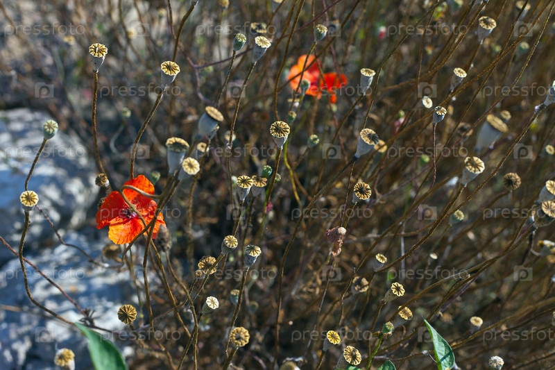 Дикие маки, растущие на весеннем поле