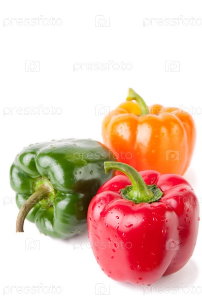 Разноцветные болгарские перцы, изолированные на белом фоне