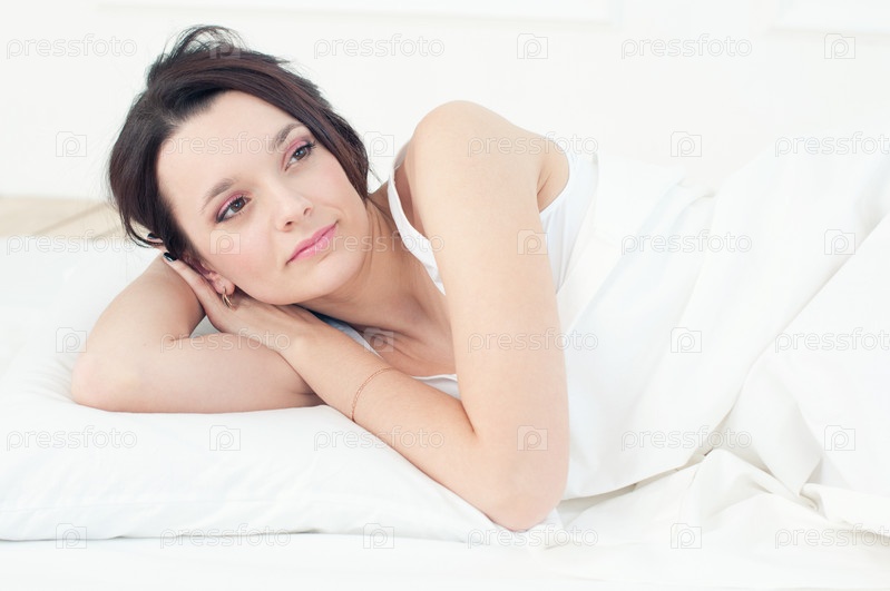 Красивая молодая женщина отдыхает в постели