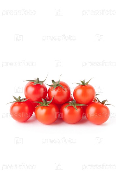 Помидоры черри, выложенные пирамидкой на белом фоне