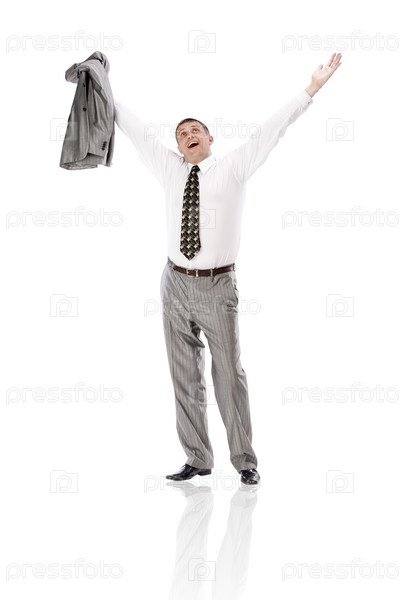 Счастливый мужчина на белом фоне