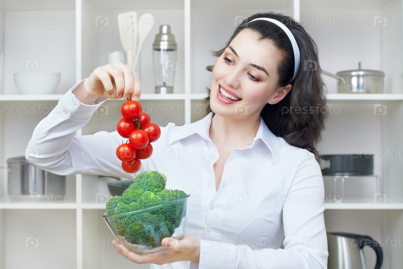 Женщина на кухне с овощами
