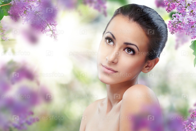 Красивая девушка с лиловыми цветами