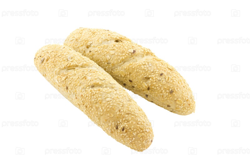 Две свежие пшеничные булочки с кунжутом, изолированы на белом фоне