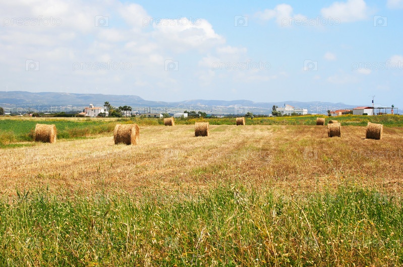 Стога сена в поле у деревни, Кипр