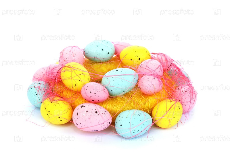 Пасхальные яйца на белом фоне