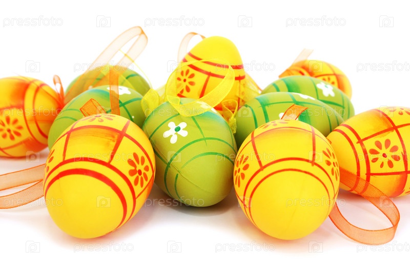 Пасхальные яйца на белом фоне