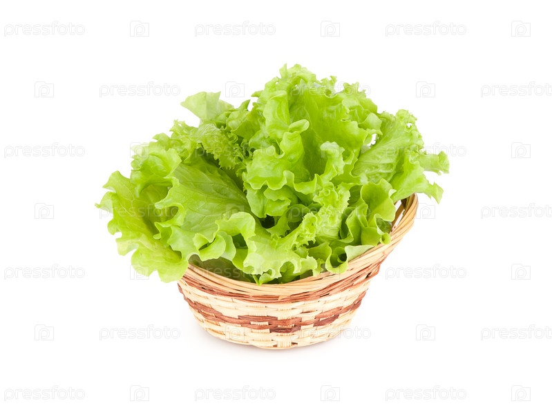 Листья салата латука в корзине