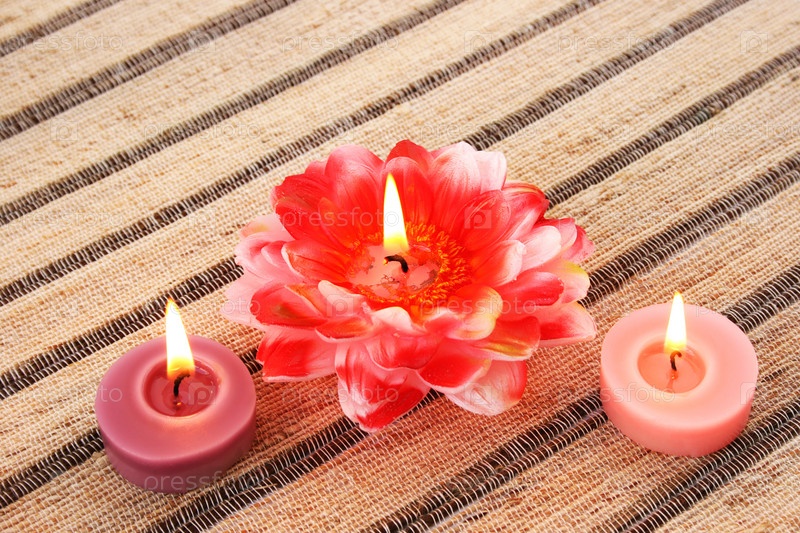 Красочные свечи на полосатом коврике