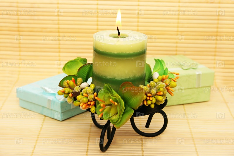 Свеча, цветы и подарки
