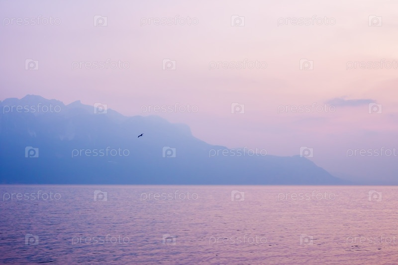 Розовый закат над озером