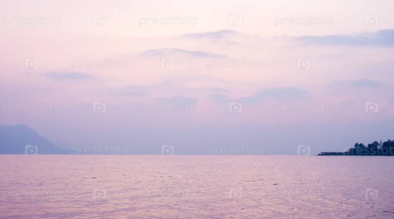 Розовый закат над озером