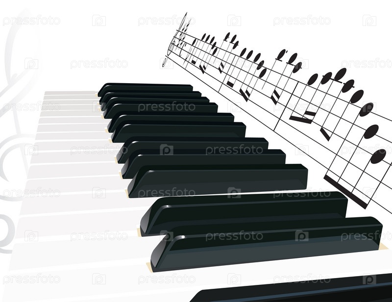 Абстракция с нотами и клавишами пианино